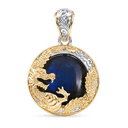 Royal Bali Collection - D'Joy Labradorite Dragon Pendant in Yellow Gold Plated Sterling Silver 18.16 Ct.