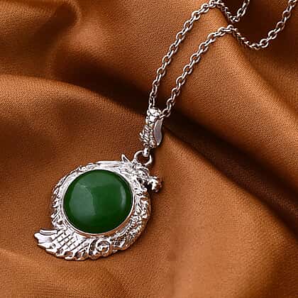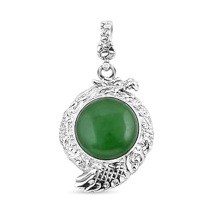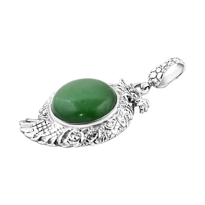 Royal Bali Collection - Green Jade Solitaire Dragon Pendant in Sterling Silver 15.50 Ct, Silver Wt 8.60 GM