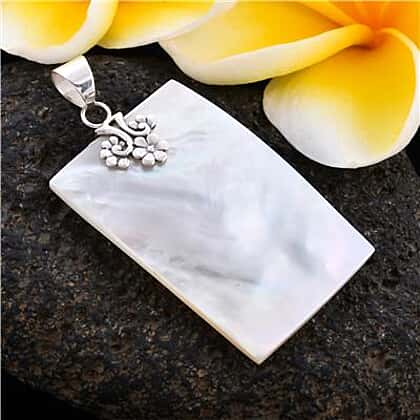 Royal Bali Collection - Mother of Pearl Rectangle Pendant in Sterling Silver