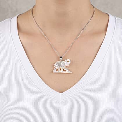 Revel in the elephant-inspired design of this pendant from the Royal Bali Collection, where a finely shaped elephant motif is carved in a luminous mother of pearl. The form captures the gentle stance of the elephant, with smooth contours and subtle detailing that bring the figure to life. The natural surface displays soft iridescent tones, shifting delicately with light and enhancing its visual appeal. Set in 925 sterling silver bail, the piece maintains a clean and balanced finish. A distinctive design that blends symbolic meaning with refined craftsmanship, suitable for both everyday wear and thoughtful styling.