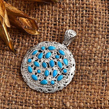 Royal Bali Collection - Sleeping Beauty Turquoise Pendant Sterling Silver 3.20 Ct, Silver Wt. 9.50 Gms.