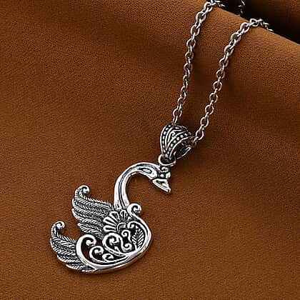 - The pendant made of fine silver has the impeccably crafted silhouette of a swan.