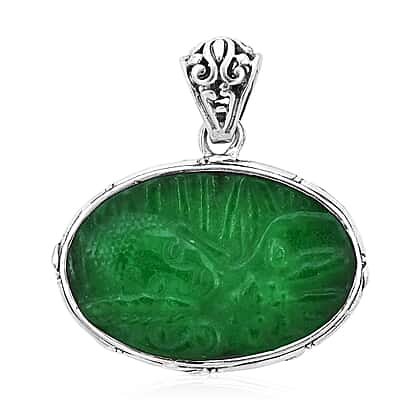 Royal Bali Collection 18.03 Ct Carved Green Jade Reversible Buddha Pendant in Silver 6.66 Grams
