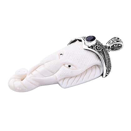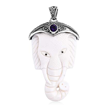 D'joy Royal Bali Collection Ox Bone and African Amethyst Elephant Pendant in Sterling Silver 54.81 Ct.