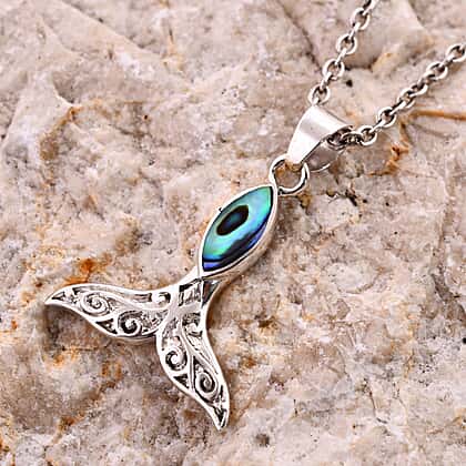 Royal Bali Crystal Bay Collection - Abalone Shell Dolphin Tail Pendant in Sterling Silver 4.00 ct