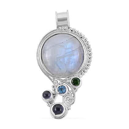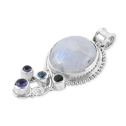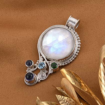 Royal Bali Gem Vitality Collection - Rainbow Moonstone and Multi Gemstone Pendant in Sterling Silver 14.80 Ct, Silver Wt. 10.00 Gms.