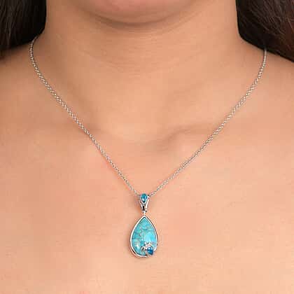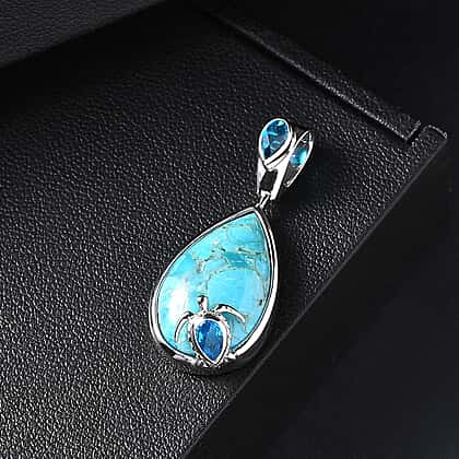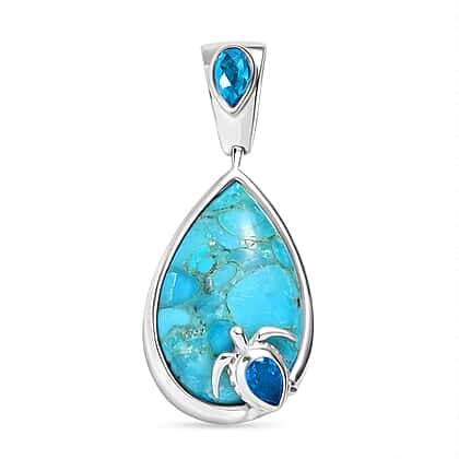 Sajen Silver - Swiss Blue Mystic Quartz & Turquoise Pendant in Rhodium Overlay Sterling Silver 11.90 Ct.