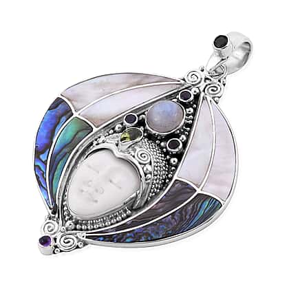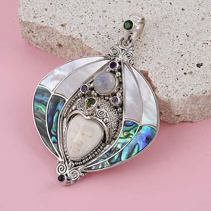 Sajen Silver BALI GODDESS Collection - Carved Ox Bone and Multi Gemstone Pendant in Sterling Silver 18.00 Ct, Silver Wt. 23.90 Gms