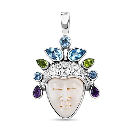 Sajen Silver BALI GODDESS COLLECTION - Ox Bone and Multi Gemstones Pendant in Sterling Silver 19.67 Ct, Silver Wt. 13.00 Gms