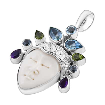 SAJEN SILVER Goddess Collection- Ox Bone and Multi Gemstones Pendant in Sterling Silver 19.67 Ct, Silver Wt. 13.00 Gms