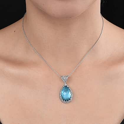 Sajen Silver Cultural Flair Collection - Celestial Quartz Pendant in Platinum Overlay Sterling Silver 15.70 Ct.