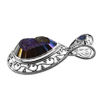 Sajen Silver 24.08 Ct. Blue Window Druzy and Celestial Sapphire Pendant in Sterling Silver 8.6 Gms