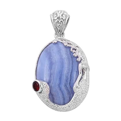 Sajen Silver Gem Vitality Collection - Blue Lace Agate and Mozambique Granet Pendant in Sterling Silver 38.00 Ct.