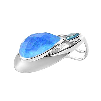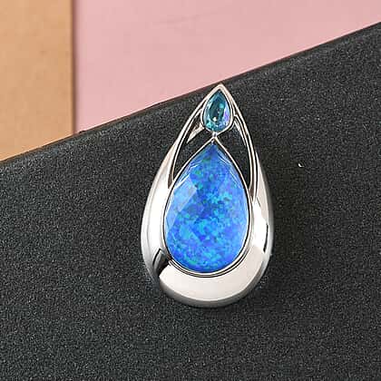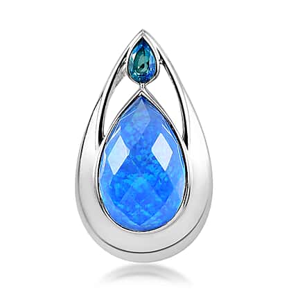 Sajen Silver ILLUMINATION Collection - Opal Quartz and Rainbow Paraiba Pendant in Platinum Overlay Sterling Silver 5.760 Ct.