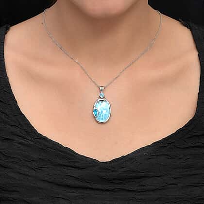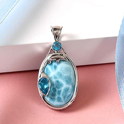 Sajen Silver 20.58 Ct. Larimar and Celestial Swiss Blue Mystic Quartz Pendant in Sterling Silver