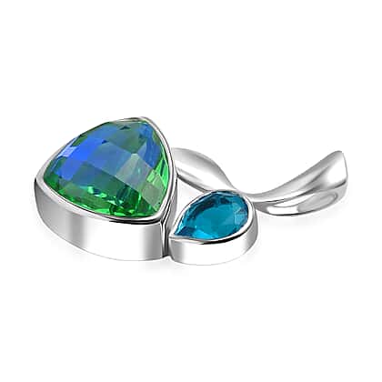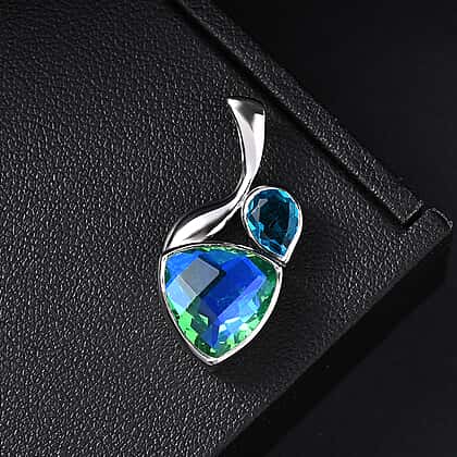 Sajen Silver Peacock Triplet Quartz & Celestial Swiss Blue Mystic Quartz Pendant in Rhodium Overlay Sterling Silver 5.68 Ct.