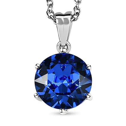 Sapphire Crystal Pendant with Stainless Steel Chain (Size - 20) with Lobser Clasp in Platinum Overlay Sterling Silver