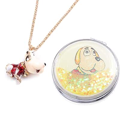 - DESIGN: Make your styling session incredible through this 2 piece set of White Austrian Crystal Dog Necklace and Mirror in Yellow Gold Tone that carries a cute image of a dog on top of mirror while a dog pendant hangs in the necklace