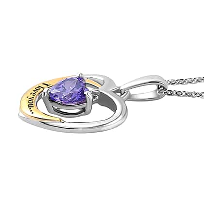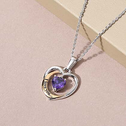 Propose to your loved one for that big day with this coloured cubic zirconia heart pendant to encourage your chances of hearing a positive response. The lovely heart pendant is created by talented artisans and features a heart faceted-cut coloured zirconia, exuding purple hues, making an amethyst-like appearance on your neck. The crescent moon, engraved with the beautiful message of I Love You, overlayed with yellow gold, creates a magical representation of your affection. Crafted in solid sterling silver and accompanied by a 20-inch chain, this heart pendant necklace will make a beautiful gift.
