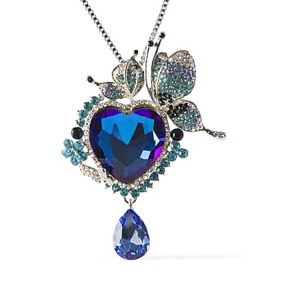 Simulated Blue Mystic Topaz and Multi Gemstone Austrian Crystal Heart Pendant with Chain 29 with 2.5 inch Extender