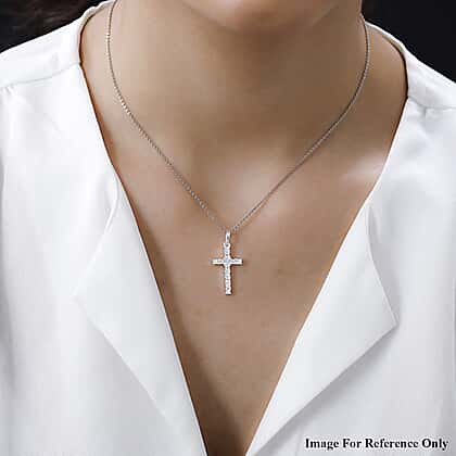 This cross-diamond pendant necklace design is enriched with spiritual yearning and bright sparkles. This pendant is an alternate set with diamond rounds on the frame, exuding brilliant shine and allure. It is crafted from 925 sterling silver with a fine polish to give it lustre and shine. Comes with a small bail on the top to hold the chain and secure the piece on your neckline. A perfect gift to give to your loved ones this festive season.