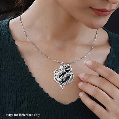 The dragon is a powerful, mystic and beautiful creature, frequently used in mythology, legend and fantasy stories. The dragon is a powerful symbol of leadership, strength and wisdom. This sterling silver dragon pendant, made from 925 sterling silver, is a bold piece to reflect your individualistic personality. It can be the perfect gift for someone you look up to. Measuring 4.5 cm, it is a standout piece sure to make heads turn.