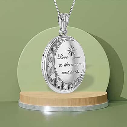 Oval Shape Moon And Star "Love You To The Moon And Back" Medium Locket Pendant in Sterling Silver Rhodium Plated