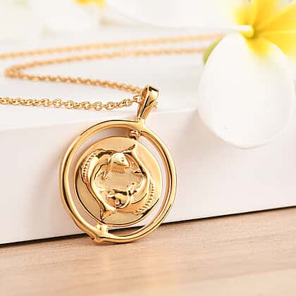 Sundays Child 14K Gold Overlay Sterling Silver Pisces Zodiac Sign Pendant with Chain (Size 20), Silver Wt. 6.40 Gms
