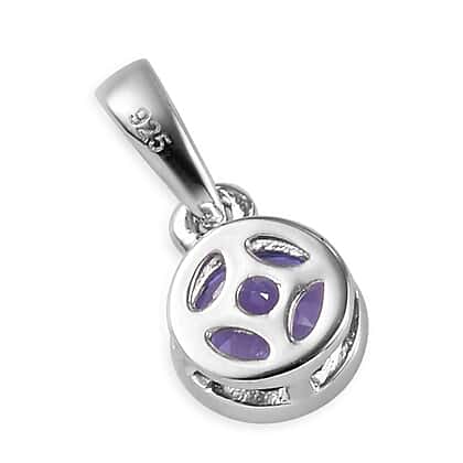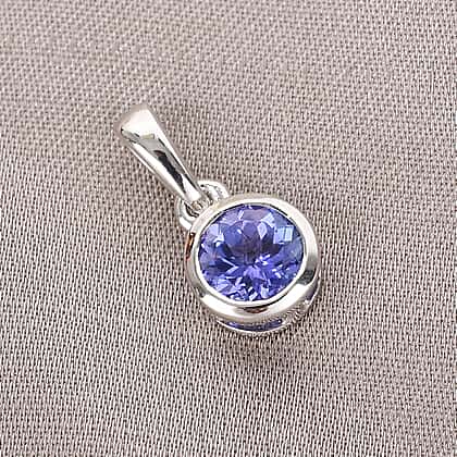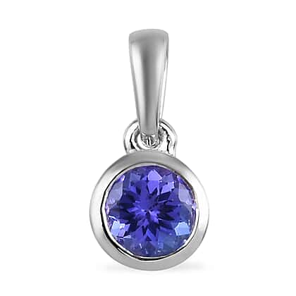 Bezel Set Tanzanite Charm Inspired Solitaire Pendant in Platinum Plated Sterling Silver