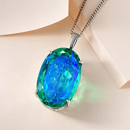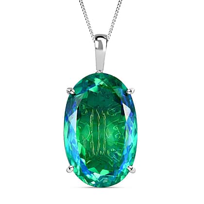 TJC Launch- Peacock Quartz Pendant with in Platinum Overlay Sterling Silver 100.00 Ct