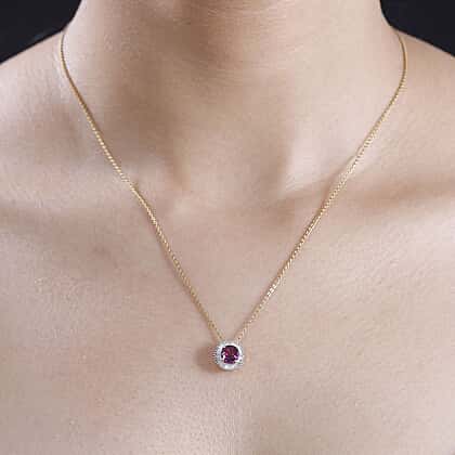 TONY DINIZ COLLECTION - 9K Yellow Gold Purple Garnet & Natural White Diamond Pendant 1.12 Ct.