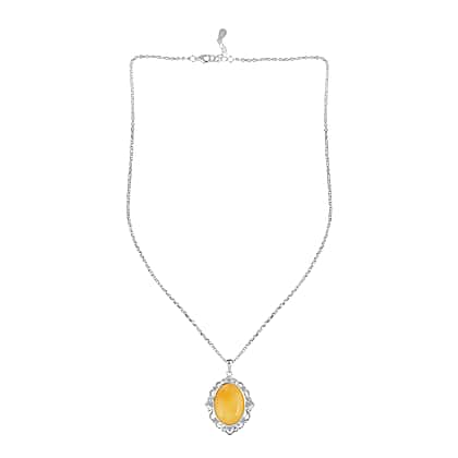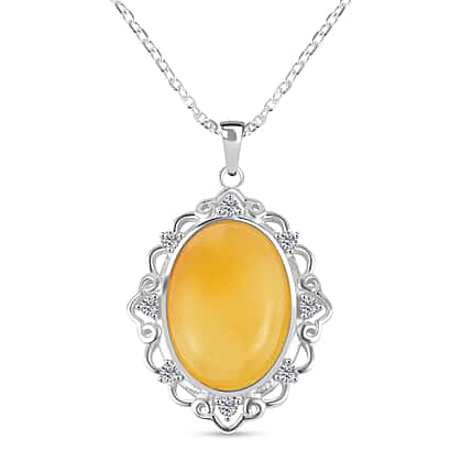 Tucson Find - Butterscotch Amber & White Zircon Pendant with Chain in Sterling Silver 10.30 Ct.