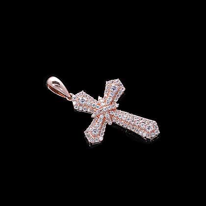 Natural Pink Diamond Cross Pendant in 9K Rose Gold