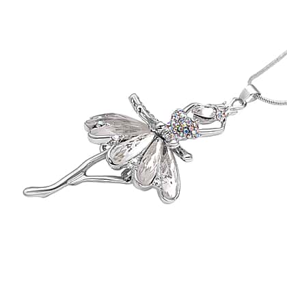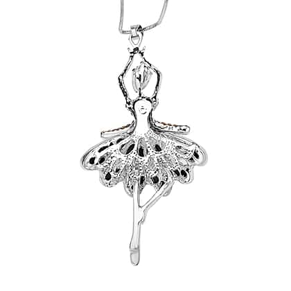 White AB Crystal and Simulated Diamond Ballerina Pendant with Chain (Size-28 With 2 Inch Extender) in Silver Tone