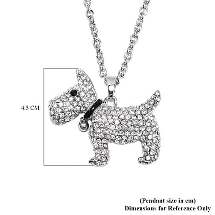 White and Black Austrian Crystal Enamelled Dog Pendant with Chain (Size 29 with 3 inch Extender) in Silver Tone