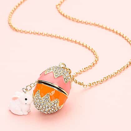 A stunning and unique Easter egg pendant for your loved ones, this piece adds a dash of fun and flair to everyday wear. It features a beautiful enamelled Easter egg that opens to reveal a little bunny inside. The pendant is made in yellow gold tone and studded with Austrian crystals. With a smooth finish, the pendant is the ideal gift for both children and adults.