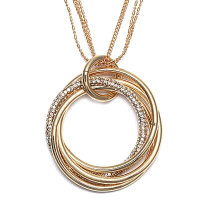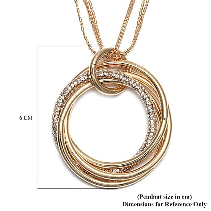 White Austrian Crystal Entwined Circles Pendant with Chain (Size 29 with 2 inch Extender) in Yellow Gold Tone
