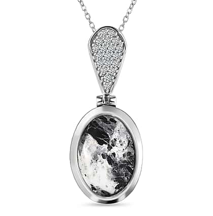 White Buffalo and Natural Zircon Pendant with Chain (Size 20) in Platinum Overlay Sterling Silver 6.26 Ct