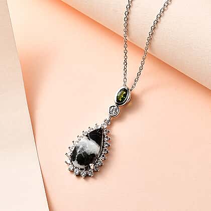White Buffalo, Natural Zircon and Natural Chrome Diopside Pendant with Chain (Size 20) in Platinum Overlay Sterling Silver 4.10 Ct