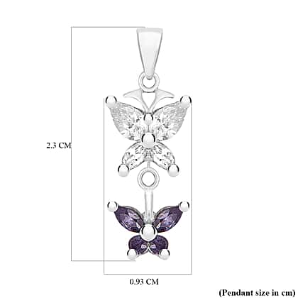 White Cubic Zirconia & Amethyst Cubic Zirconia Butterfly Pendant Sterling Silver