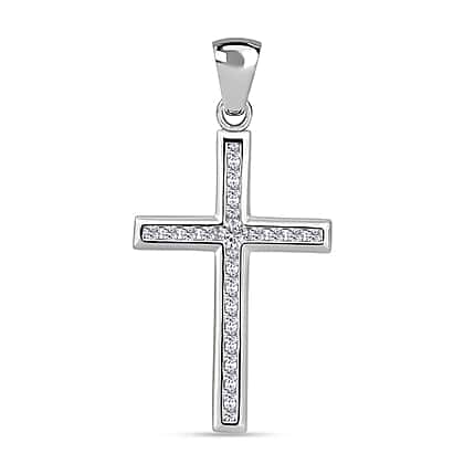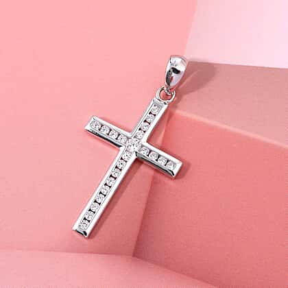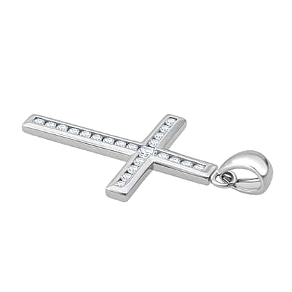 White Cubic Zirconia Cross Pendant in Rhodium Overlay Sterling Silver 0.57 Ct.