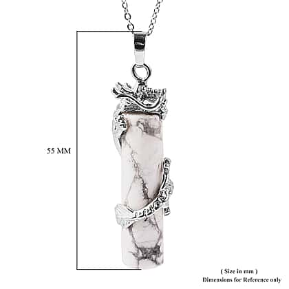 • It is embellished with a barrel-shaped White Howlite stone of 46.500 ct. wrapped in the arms of a dragon motif