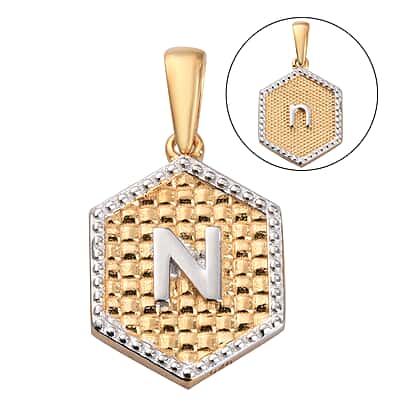 Yellow Gold and Platinum Overlay Sterling Silver Initial letter N Pendant