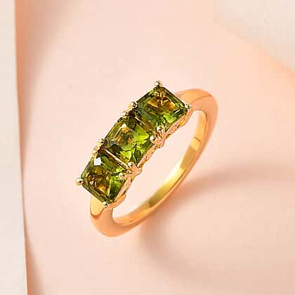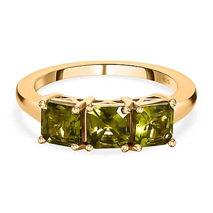 Peridot Arizona 3 Stone Ring in 18K Vermeil Yellow Gold Overlay Sterling Silver 2.11 Ct