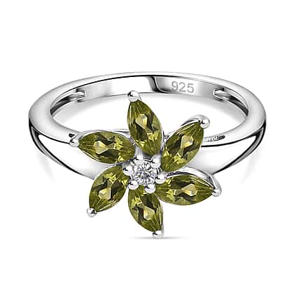 Peridot Arizona & Natural Zircon Floral Ring in Sterling Silver