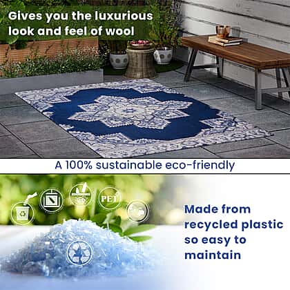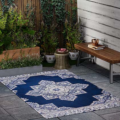 PET Outdoor Digital Printed Rug 1000 GSM (Size 150x90 Cm) - Blue & Multi