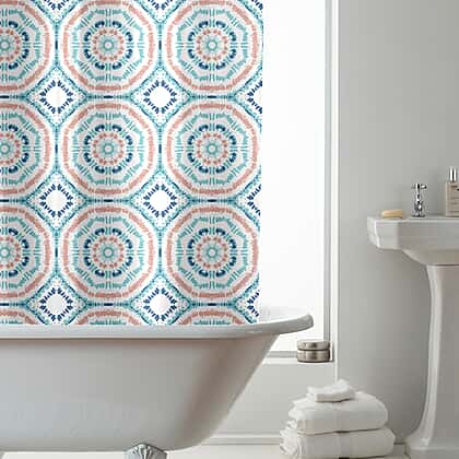 - Includes designer shower curtains and easy-to-install rings