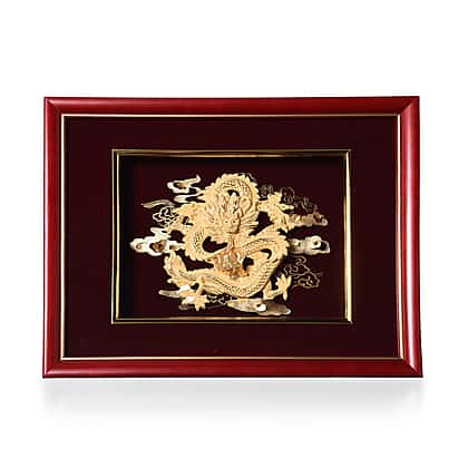Home Decor - 24K Gold Plated Dragon Wooden Frame (Size 27x34 Cm)