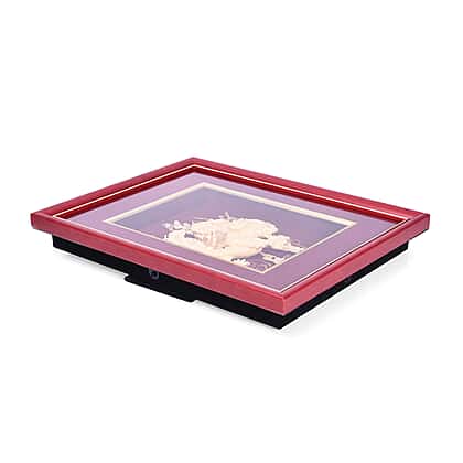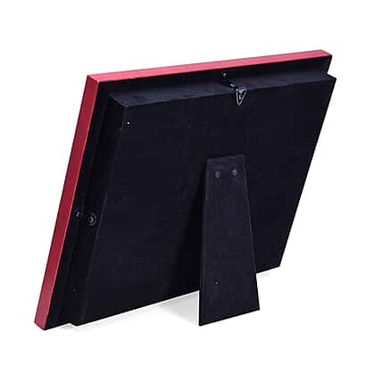 - The wooden frame is hand-crafted in the dimensions of 27x34 cm and finished in a deep burgundy colour to match the striking decoration inside it