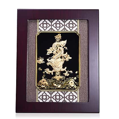 Home Decor - 24K Gold Plated Dragon Wooden Frame (Size 27x34 Cm)